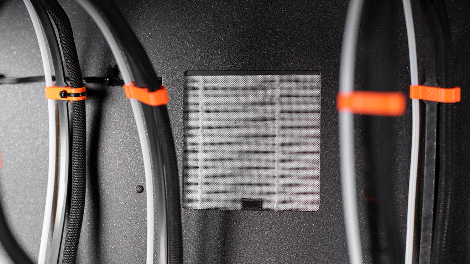 The filtration system is useful especially when you print from PC Blend Carbon Fiber and other materials that produce particles during printing. It also reduces the odor and prevents the spread of ultra-fine particles (UFPS) into the air, when printing from certain materials.