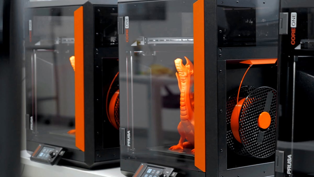 The Prusa CORE One+ takes up 50% less space than the MK4S inside an enclosure, yet it delivers an impressive 30% increase in print volume. Space efficiency matters - even for us! With a massive 3D print farm of over 600 machines, the CORE One+'s compact footprint and optimized design let us fit even more printers into the same space and boost our production.